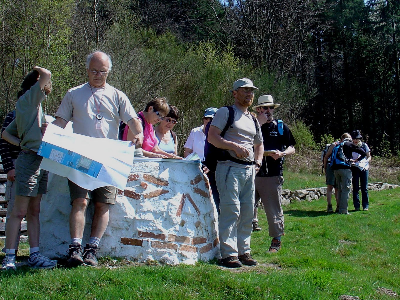 Samedi 24 avril : AMUR accueillait sur le coup de midi le stage "Ma carte me dit tout ou presque". Après un pique-nique pris sur les marches des escaliers de la mairie de Broye et un café stimulant, les 16 stagiaires, tous de Saône et Loire ( 9 de l'ASL de Louhans, 5 de la Vaillante d'Autun et seulement 2 d'AMUR) pénétraient dans la salle de réunions pour une étude sur cartes de la légende. Maurice procédait de manière pédagogique partant des couleurs pour passer ensuite au relief et terminer par un certain nombre de symboles. Daniel prenait alors le relais, distribuant une carte permettant de rejoindre le site d'étude sur le terrain. Il insistait sur tous les repères permettant d'arriver à bon port, précaution inutile, les panneaux routiers facilitant largement la tâche. A la chapelle de la Certenue, de nouvelles cartes étaient distribuées, le but étant de surligner le parcours emprunté. Une première halte permettait de faire une lecture de paysage et de passer alternativement de la carte à la réalité du terrain et du terrain à la carte, occasion également de bien orienter la carte.